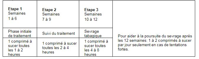 Pendant les semaines 1 à 6, la posologie doit être au moins de 9 comprimés à sucer par jour.