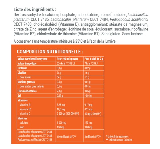 Sa composition unique associe des micronutriments essentiels, tels que la vitamine D, la vitamine B1, la vitamine B2, le calcium et le zinc, adaptés aux besoins spécifiques des patients atteints du SII.