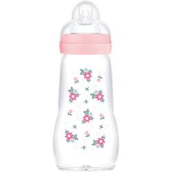 Le BIBERON VERRE 2MOIS+ 260ML DÉBIT MOYEN MAM convient aux bébés de 2 mois et + débit vitesse 2