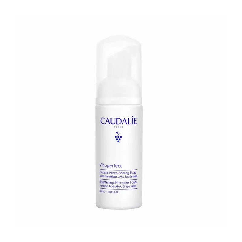 VINOPERFECT MOUSSE MICRO PEELING ECLAT 50ML CAUDALIE nettoie la peau en profondeur et élimine les cellules mortes grâce à une exfoliation kératolytique douce pour un teint plus lumineux et unifié.